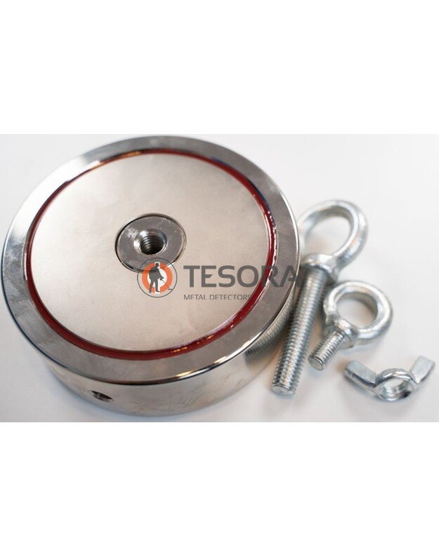 Komplekte: paieškos magnetas, žiedas su sriegiu M10, veržlė M10, varžtas M8.