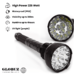 Šis prožektorius sukurtas su 15 šviesos diodų ir turi neįtikėtiną 225 vatų galią – pakankamai galingas, kad būtų apšviečiama į priekį 300 m.
