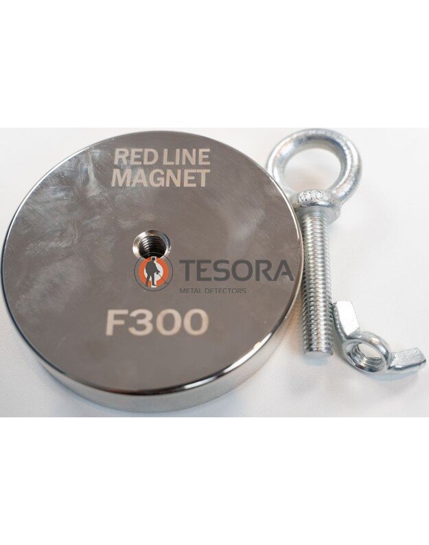 Komplekte: paieškos magnetas, žiedas su sriegiu M10, veržlė M10, varžtas M8.