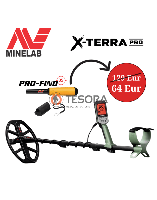 Minelab X-TERRA PRO – tai keliadažnis metalo detektorius su Pro-Switch™ technologija, leidžiančia dirbti dažniais nuo 5 iki 15 kHz, pritaikytas naudoti įvairiose grunto sąlygose. Atsparus vandeniui iki 5 m, turi 6 paieškos programas, reguliuojamą apšvietimą ir vibraciją. Komplekte – V12X ritė ir krovimo kabelis.